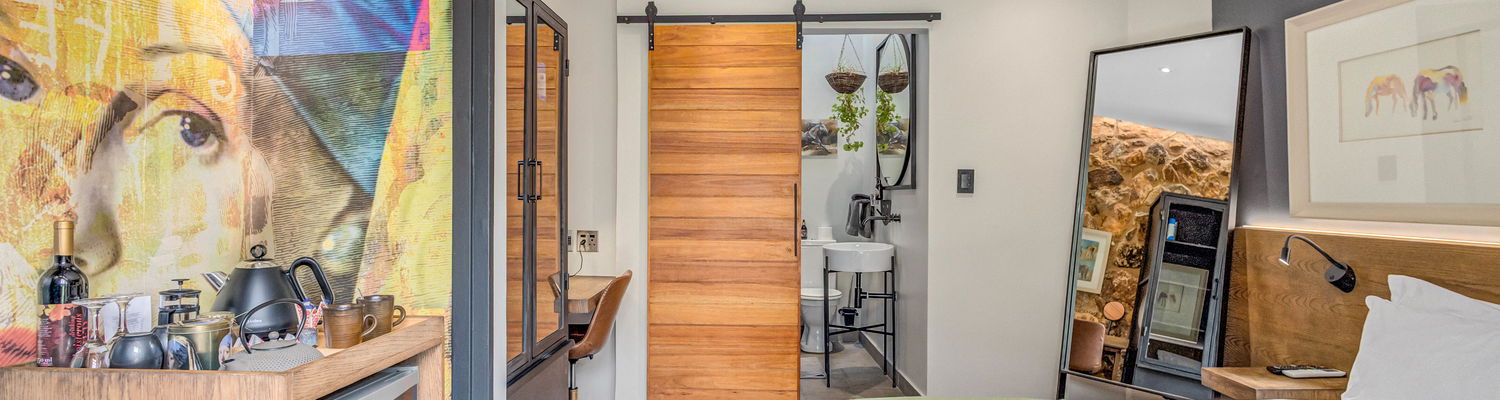 Our rooms have private entrances and safe off-street parking with 24/7 access. All the rooms have en-suite bathrooms and are equipped with MyFamilyCinema, an equipped tea/coffee station, minibar fridge and a workstation with internet connection (24 hrs).